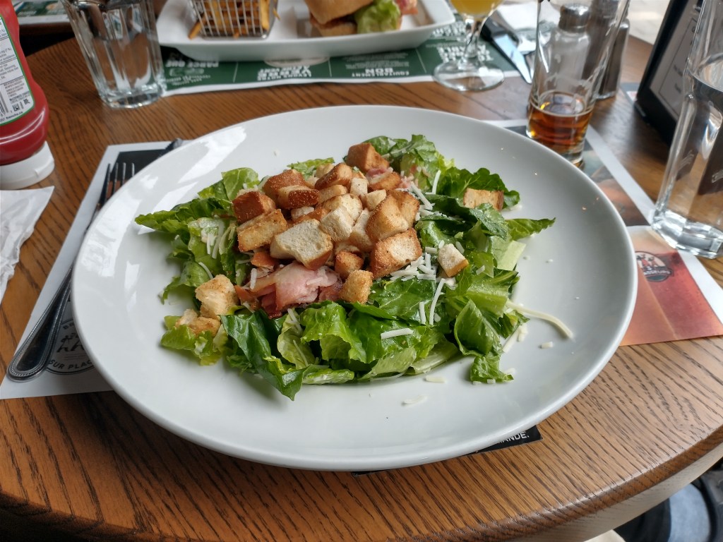 My recollection: I literally can’t remember this salad, which suggests it was up to par… From the looks of the photo on the left, them be some hefty (and dry?) croutons.