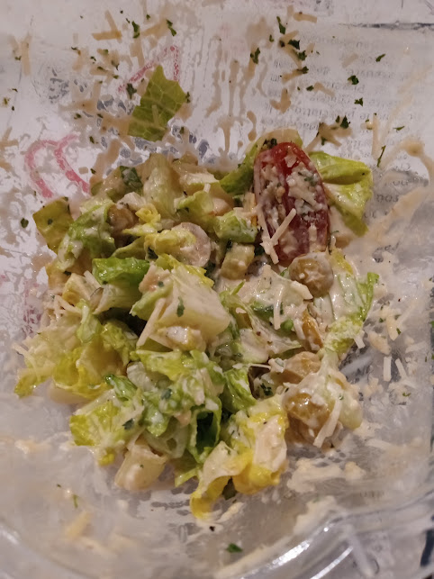 - Croutons: Very satisfied with these! Kinda ephemeral in consistency, which normally causes fork struggles, but I do not recall any such frustration. Well-seasoned, too, il me semble.